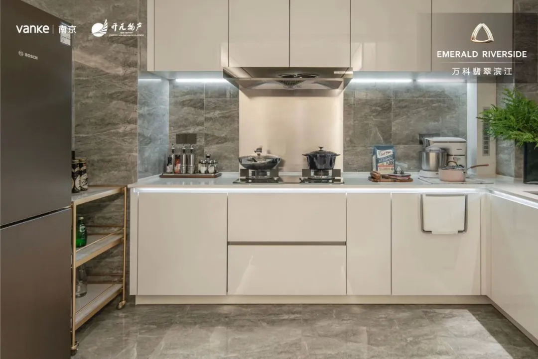 升级后的精装修标准较多,威乃达橱柜,博世嵌入式双开门冰箱,美诺灶台、油烟机、洗碗消毒机和洗衣烘干机,杜拉维特马桶、高仪花洒、当代水龙头等等。