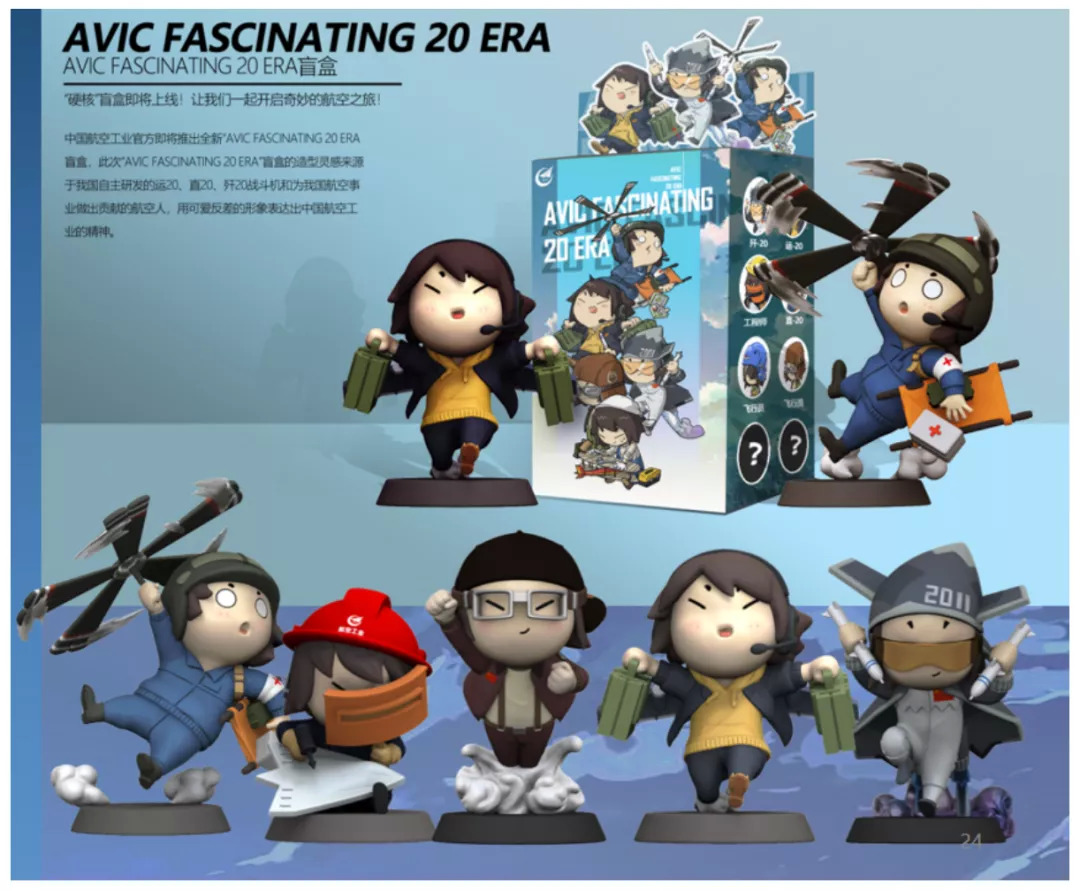最后分享一个科技方面的国潮跨界案例,就是中国航空工业公司。在我国建国60周年的阅兵式上,大家看到了很多的飞机,这些都是由中国航空制造的,所以中国航空工业公司在大家的印象中一直是属于国防科技方面的高精尖企业,跟普通消费者距离很远,但现在他们也开始做国潮和亲民产品了。首先,他们做了一些以“运20”、“直20”、“歼20”为设计灵感来源的系列盲盒,都带有航空元素,跨界产品独特且接地气,不仅唤起了一大批军迷爱好者的热情,还受到了市场的欢迎。