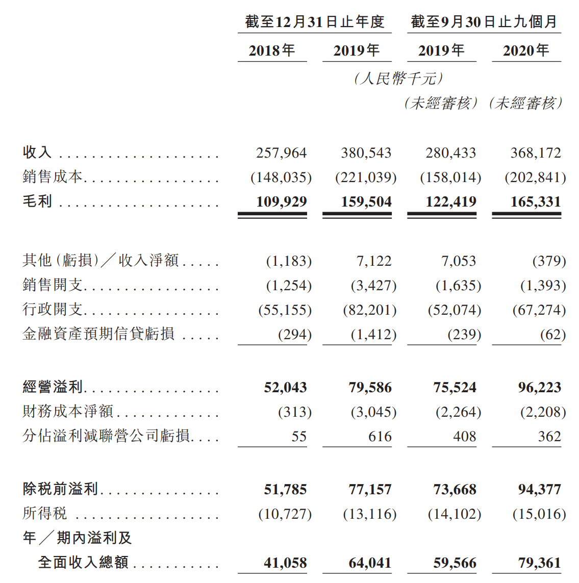 再来看看招股书披露的其他数据。营收方面,新希望服务2018年、2019年,至2020年9月30日分别为2.58亿元、3.81亿元和3.68亿元。同期,净利润分别为4105.8万元、6404.1万元和7936.1万元。增长情况还不错。