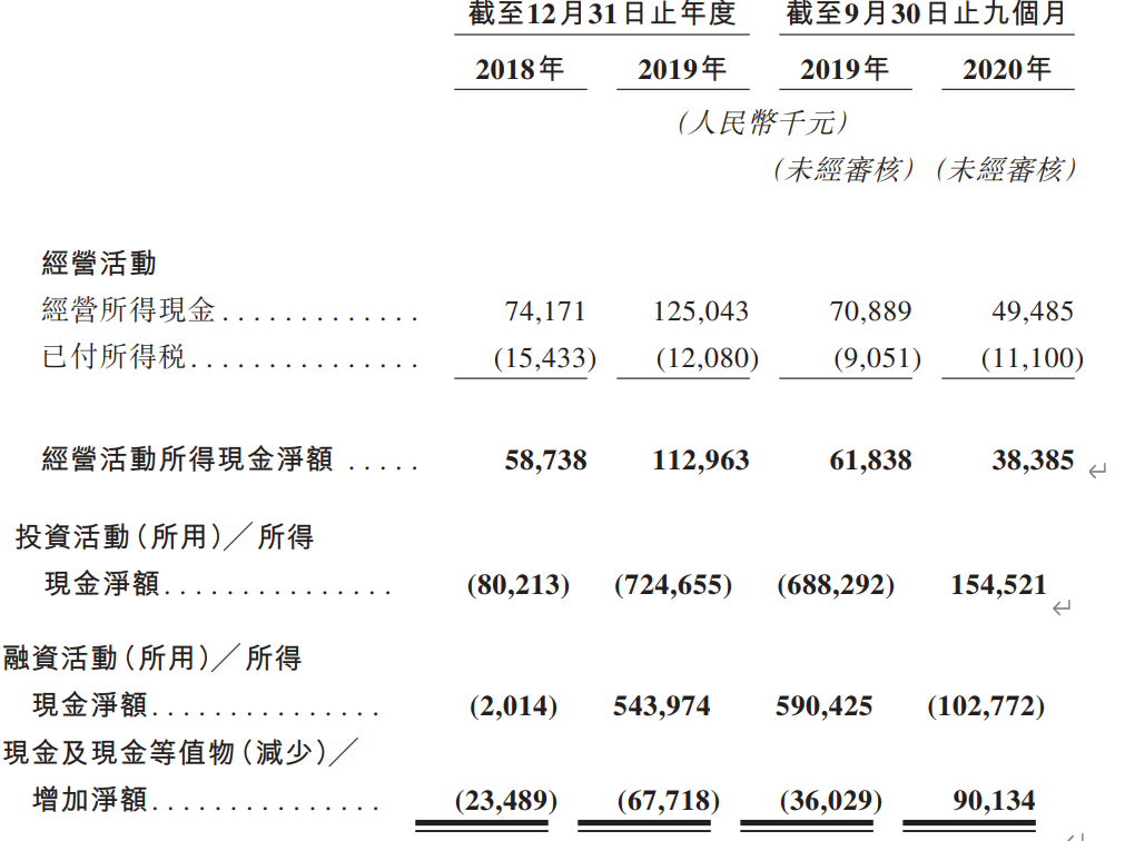 融资活动也受影响,2020三季度末为-1.03亿元,2019年同期为5.9亿元。
