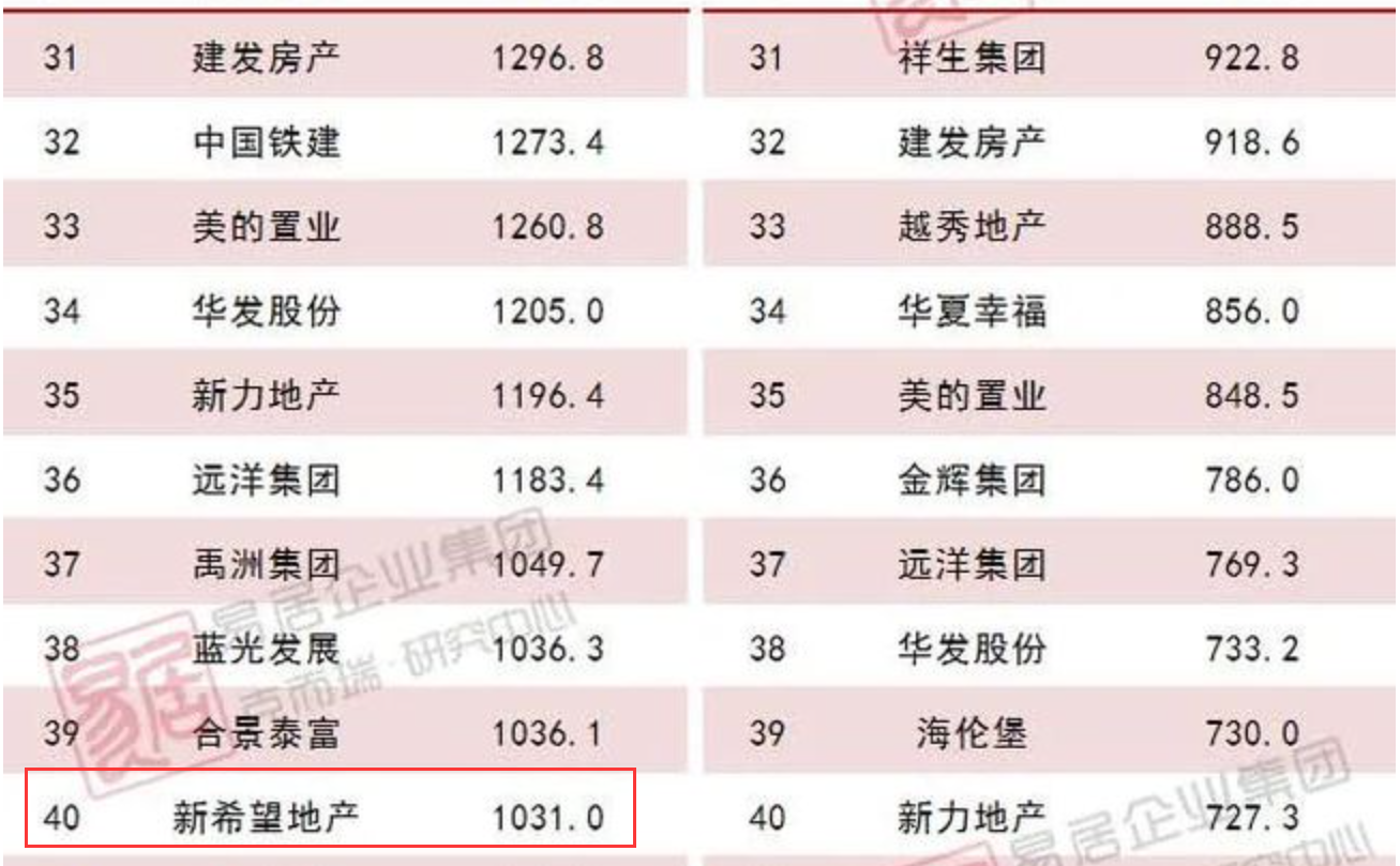 克而瑞榜单显示,2020年新希望地产全口径销售额1031亿元,比2019年的735.9亿元高出了不少,位列第40名;权益金额537.3亿元,比2019年的404.8亿元增长了32.7%,位列第55名。