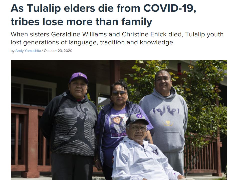 这场大流行带走了太多原住民精神领袖,毕生致力于推广原住民艺术和文化的原住民领袖马歇尔·麦凯,备受尊重的立岩苏族长老杰西·杰伊·泰恩·阿利夫,图拉利普部落族长拉尔丁·威廉姆斯和她的妹妹克里斯汀·埃尼克,还有能流利地说乔克托族本族语言的杰里·金索芬......
