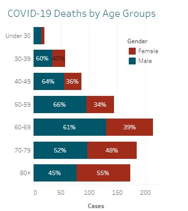 △纳瓦霍保留区原住民保留地因新冠肺炎死亡患者的年龄分布