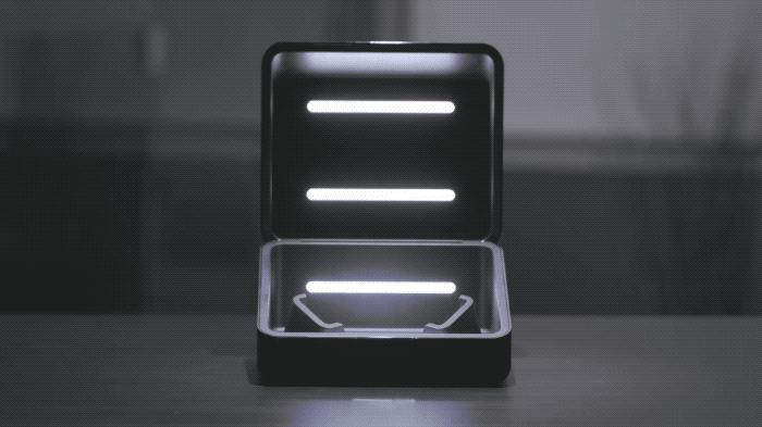 一般n95口罩需要定时更换,雷蛇给这款口罩设计了左右两边都可替换、可充电的呼吸机,在充电盒中充电的同时还可以通过紫外线进行内部消毒。