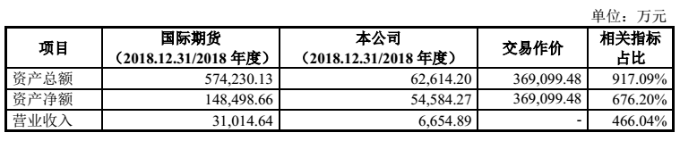 从中国中期2019年5月披露的“发行股份购买资产并募集配套资金暨关联交易报告书(草案)(修订稿)”来看,国际期货截至2018年年底的资产总额是57.42亿元,资产净额是14.85亿元。