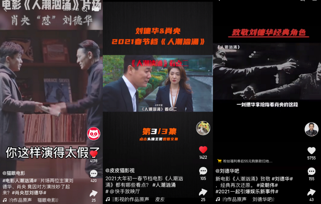 当下是营销追着短视频跑的时代,片方开官抖号已成宣发“标配”,快手2020发力宣发的成绩有目共睹。无论春节档前景如何,几乎未影响到各片方在短视频平台上的营销节奏,花式营销手段仍层出不穷。
