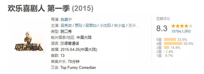 从15年至今,《欢乐喜剧人》已经连播六季,如今第七季也在更新中。而在节目的豆瓣评分上,从第一季的8.3分,一路跌落到第六季的4.9分,观众最直观的感受是,“喜剧越来越不好笑了。”