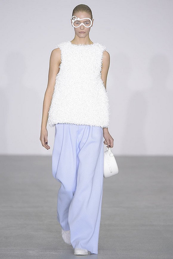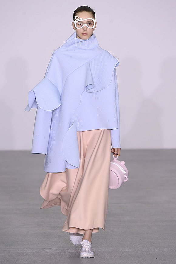 毕业于针织专业的李筱身上的中国味儿更淡一些,她的实验性服装带着达利的超现实主义:毛茸茸的线绒毛衣、不对称袖与巨大的弯曲状花边。其市场可行性虽然是个问题,可李筱擅长的感性色彩几乎能在第一眼就控制住你的心跳节奏。也难怪老牌设计师 Azzedine Alaïa 和 10 Corso Como 创始人 Carla Sozzani 都表示过欣赏。