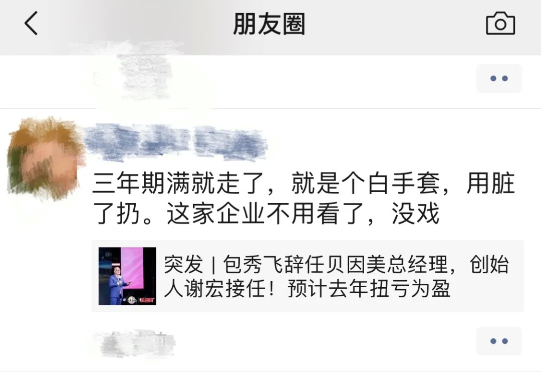 有业内人士评论道,“三年期满就走了,就是个白手套,弄脏了扔,这家企业不用看了,没戏。”、“包秀飞年薪900万元,都是一个季度的利润了,这也太浪费了。”、“公司不赚钱,大小管理人员费用不低,怎么弄都是白搭。”