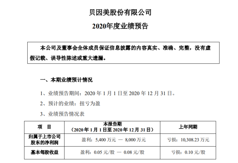 从上述相关公告中了解到,2020年贝因美净利润预盈0.54亿元-0.8亿元。