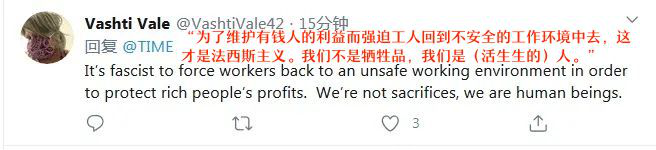 言论一出,舆论哗然,网民怒骂其“只顾富人利益不顾工人死活”,强行要求工人复工复产才是“法西斯主义”。