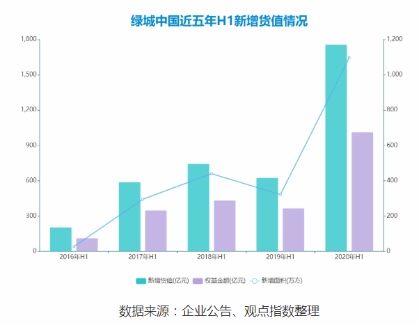 可以对比的是,2019年绿城新增货值2057亿元,其中权益约占1086亿元。也就是说,2020年仅用半年时间就拿下了和2019年全年一样多的权益新增货值。