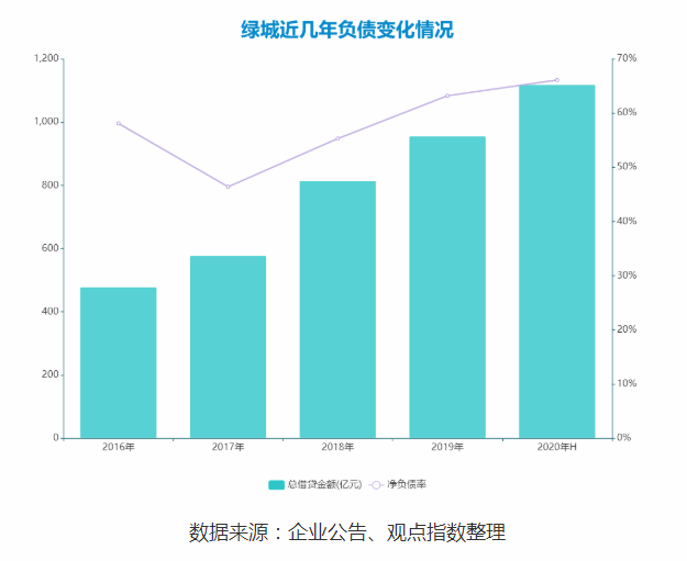 2020年上半年,绿城总借贷金额较2019年末上升162.75亿至1118.52亿,净负债上升53.2亿至490.03亿,净资产负债率上升2.9个百分点至66.1%。