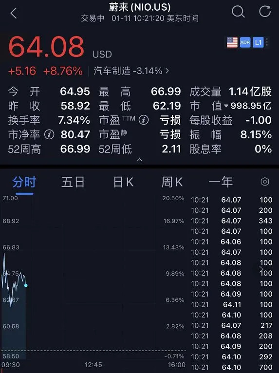 1月9日,NIO Day2020上,蔚来创始人、董事长、CEO李斌发布了新车ET7。1月11日晚,美股开盘,蔚来大涨,市值突破1000亿美元,超过宝马加法拉利的市值,尽管销量可能只有BMW的2%。