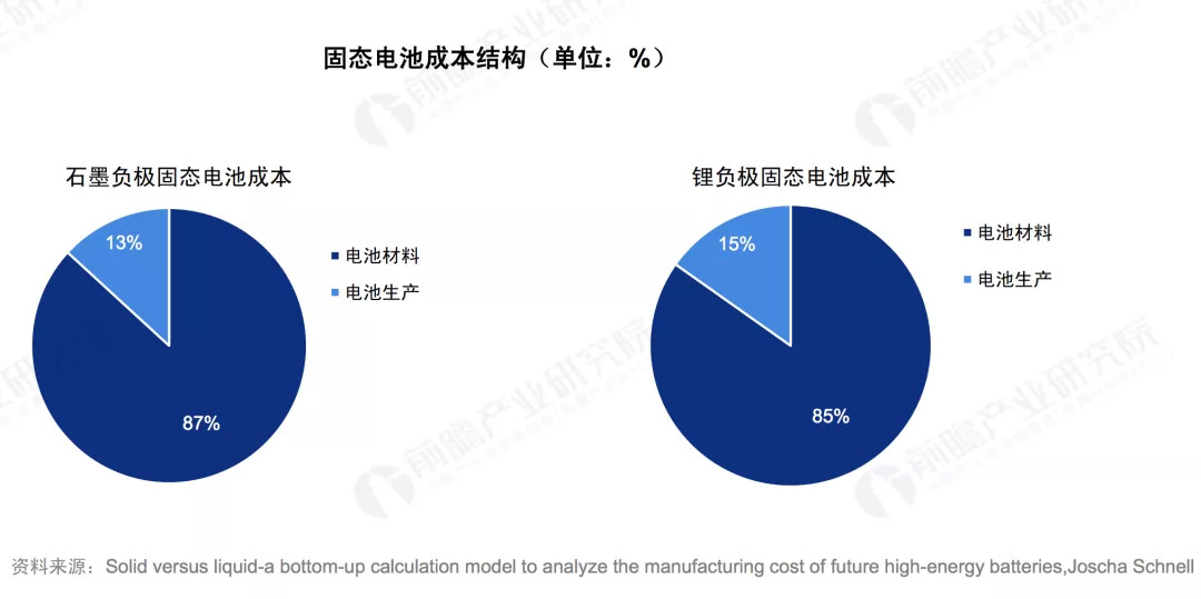 在成本结构方面,固态电池整体成本主要由电池材料成本及电池生产成本构成,其中材料成本占据了80%甚至更多的份额。