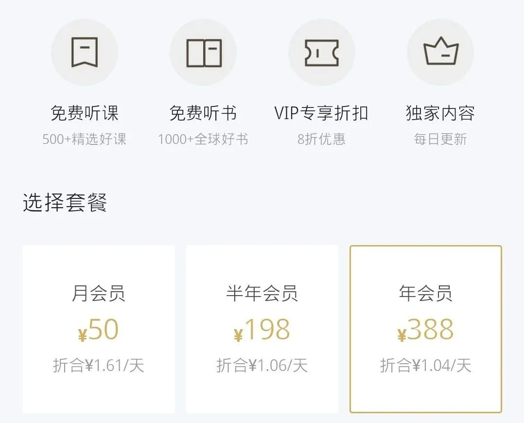 初探教育的字节跳动,也选择当时正红的知识付费赛道,做教育产品。好好学习App的定位,“基本对标得到”等公司,主打“职场个人提升、文化、生活”领域的音频与文字付费课。付费方式包括单门课程付费、平台所有课程的订阅付费形式两种。