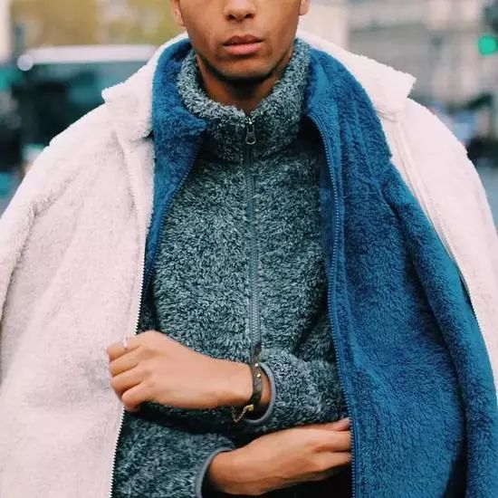 轻盈的体格也让摇粒绒的款式变得比我们想象中的更加多样,不仅是单一面料的外套、大衣,它还能与几乎一切其他面料进行复合处理,牛仔+摇粒绒、羊羔绒+摇粒绒…不止是消费者的柜上宾,它同样是设计师的心头好。