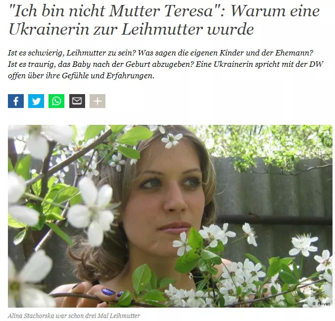 去年6月,德国有家媒体曾采访过一个代孕的乌克兰母亲丽娜·斯塔楚尔斯卡(Alina Stachorsk)。