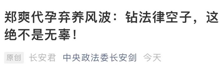 1月19日,央视新闻、紫光阁等官方媒体发文批判代孕,并表明我国禁止以任何形式代孕,中央政法委长安剑公众号甚至点名郑爽“钻法律空子”。
