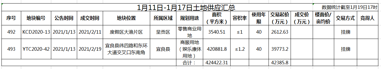 土地供应方面,与前一周相比,土地供应有所提高。上周呈贡区与宜良县各供应了1宗土地,面积合计约637亩,交易起价约4.23亿元。