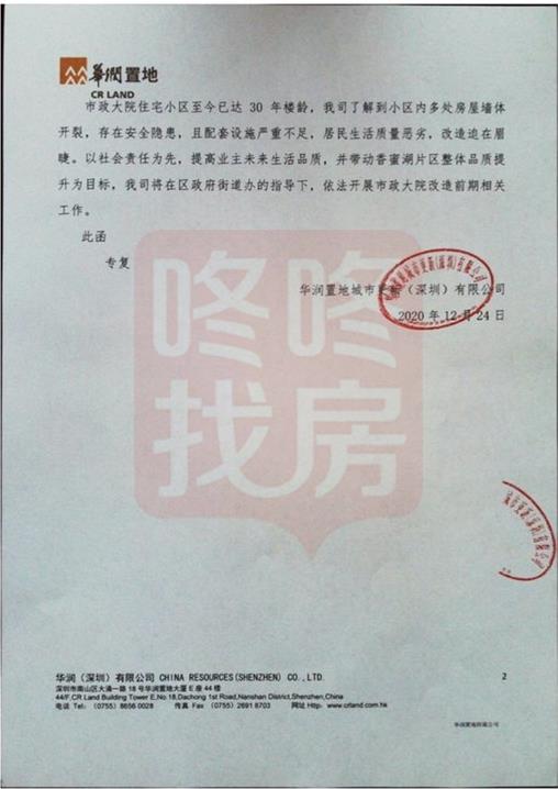 网友爆料,2020年12月24日,华润发函表示,华润置地开展市政大院改造前期相关工作。