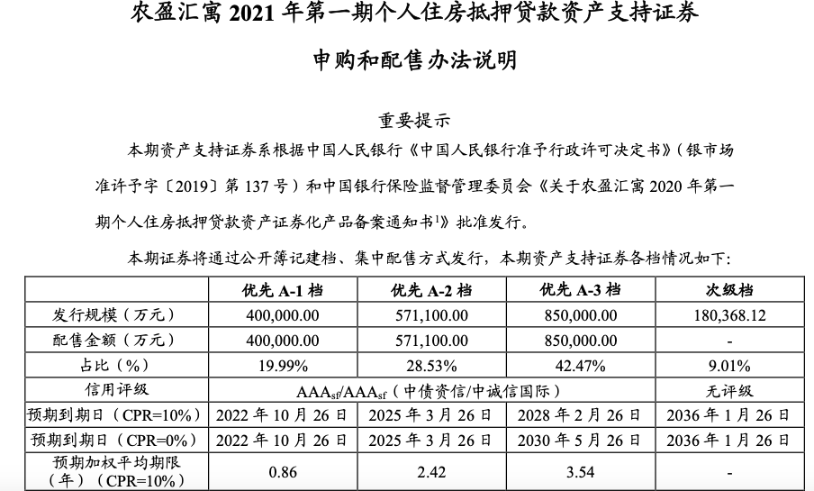 1月13日,农业银行作为发起机构和委托人的“农盈汇寓2021年第一期个人住房抵押贷款资产支持证券”(简称“农盈汇寓RMBS”)开始上市流通。
