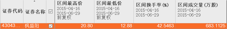 从4月16日到6月30日,枫盛阳最低成交价格是启动做市当日的12.88元每股。这意味着,这段时间内买入枫盛阳的100名新股东,成本价都不低于12.88元。