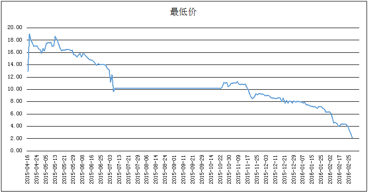 华索科技去年12月宣布筹划重大事项停牌, 2月26日宣布终止筹划重大事项复牌,股价迅速滑坡。今天收盘价报2.68元,3个交易日内跌去47%,但距离做市商初始成本价格2.29元(前复权)仍然有14%的“安全边际“。