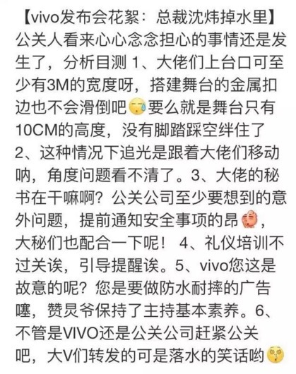 vivo创始人沈炜落水事件,是不慎落水?还是有意为之?网友们的脑洞容量就像黑洞,难以预估↓↓↓