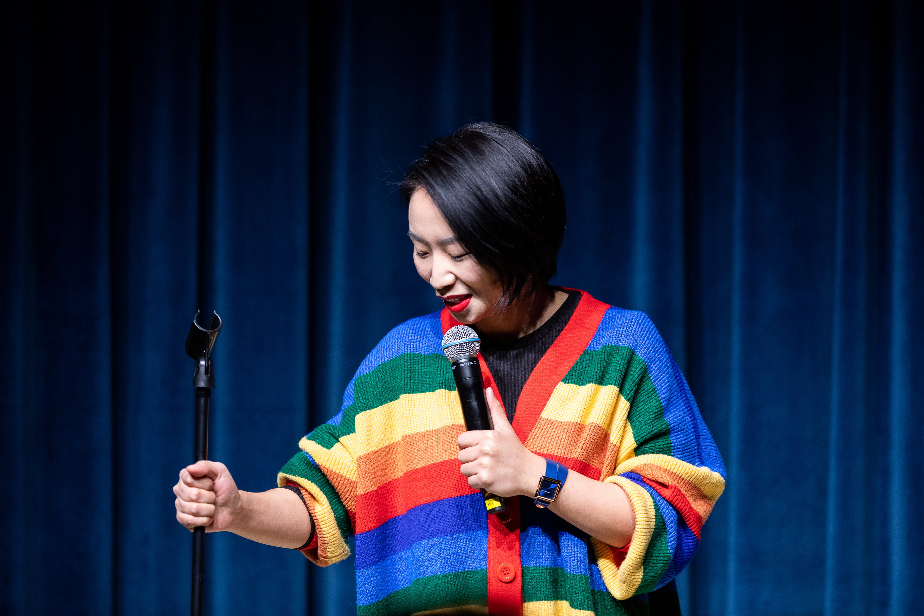 小鹿:不会,我知道出现这种情况是必然的,我讲的很多话题基本上都是我在国内第一个讲的,比如去做妇科检查,在台上讲到“阴道”这种词。我讲的时候观众一开始会懵,但我觉得还是可以培养观众的。没办法,你是第一批站在台上讲的人,你要是不去往这个方向走,观众就永远习惯听一些地域梗,我还是想讲一点又好笑,又能推动一些事情进步的东西,希望能促进人和人之间互相理解,这是我讲的所有内容的出发点,当然最根本的出发点还是好笑。