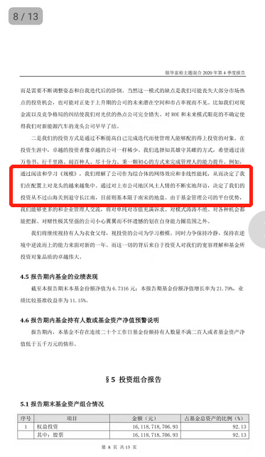 随着投教工作的开展,更多年轻的基民跑步入场,他们也喜欢蹲守基金季报,来判断“基金经理和自己是否三观契合”,甚至依据季报中基金经理的观点,来决定是否要买入或者赎回。