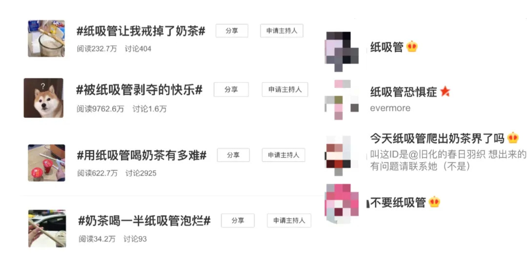微博上,#纸吸管让我戒掉了奶茶#、#被纸吸管剥夺的快乐#、#奶茶喝一半纸吸管泡烂#之类的话题就没断过。