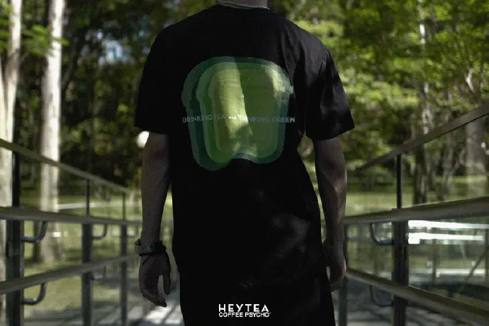 喜茶的环保T恤,含有约20g喜茶热麦所用玉米原料的回收秸秆纤维