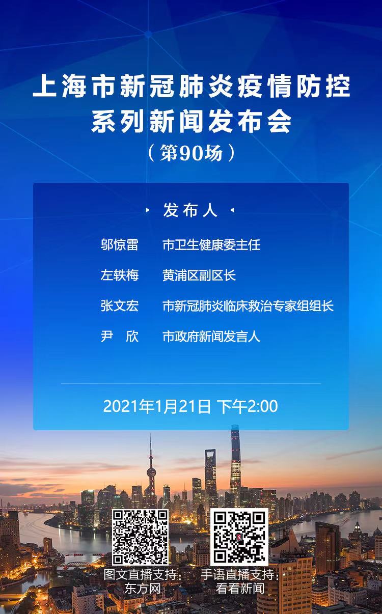 上海市疾控中心通知,兹定于今天(1月21日)下午2:00,在市疾控中心举行本市防控工作第90场新闻发布会,邀请上海市卫生健康委主任邬惊雷、黄浦区副区长左轶梅、上海市新冠肺炎临床救治专家组组长张文宏等相关负责人及有关专家介绍有关情况。