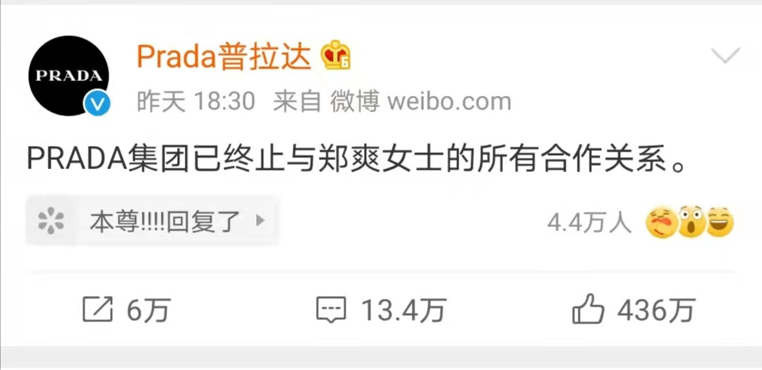 郑爽与Prada的闹剧侧面证明了品牌与明星之间的距离已经在主动或被动中无限拉近,可悲哀的是,这并不是营销模式的深度变革,在迎合背后潜藏着的是不可估量的危机。