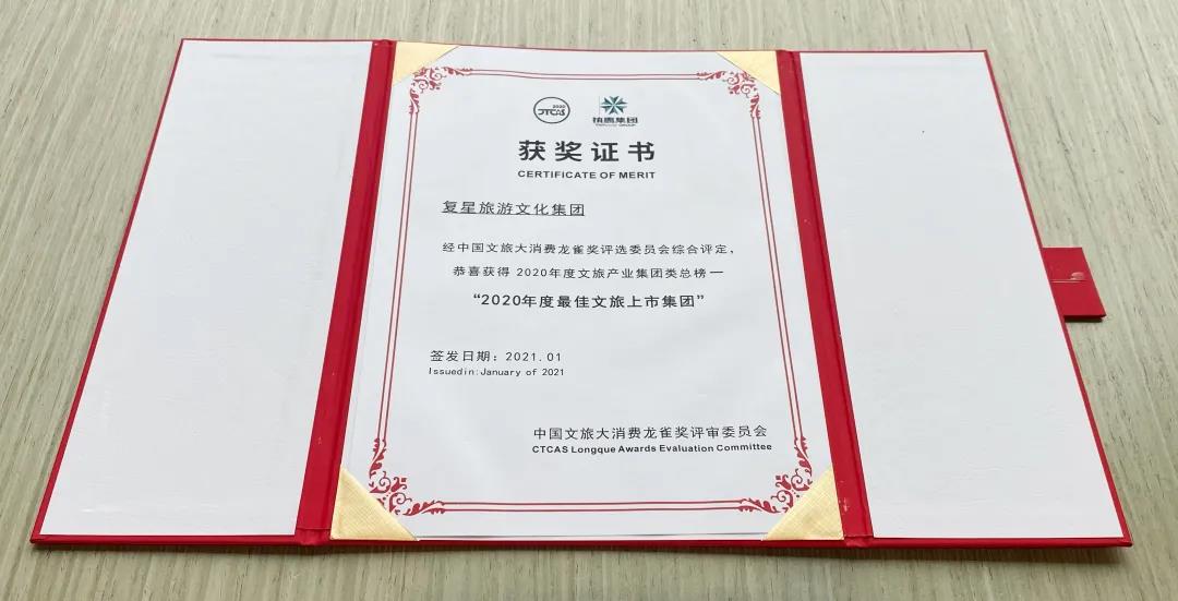 在此次颁奖盛典上,复星旅游文化集团荣获 “最佳文旅上市集团”奖项;同时复星旅文旗下复游城·丽江地中海国际度假区被评为“2020年度最佳文商旅综合体”。龙雀奖是文旅行业最具影响力的专业奖项之一,梳理文旅各个脉络细分的顶级机构,本届龙雀奖以“新经济·新业态·新人才”主题,解读全球文旅发展趋势。