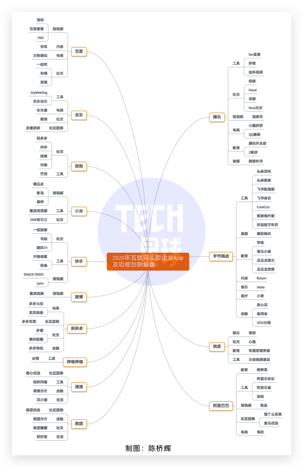 而在这些领域,互联网巨头也不是没想过跑出新意、另辟赛道,无奈都惨淡收尾:Tech星球曾做了一张有关互联网巨头产品创新领域的盘点图,在盘点完2020年互联网主要公司的业务创新后,发现除了视频号与还没跑出结果的社区团购,几乎全部阵亡。