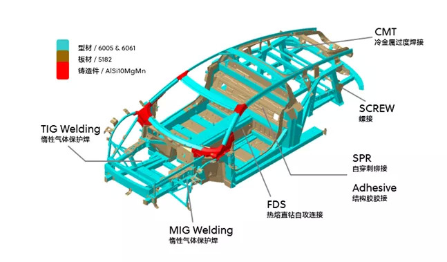 轻量化是大趋势,使用铝合金是潮流。但铝材强度比不上超高强度钢,未来如何做平衡,还蛮值得期待的。