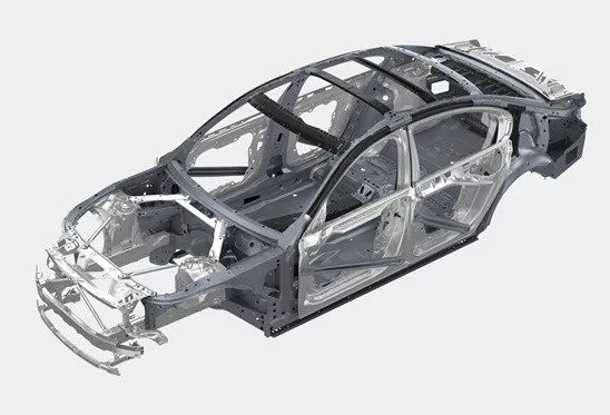 升级为框架式车身结构,车身就变得更像是人体。采用了不同截面形状的梁来代替传统的钣金结构,「骨头(梁)」可以起到更好的整体受力。