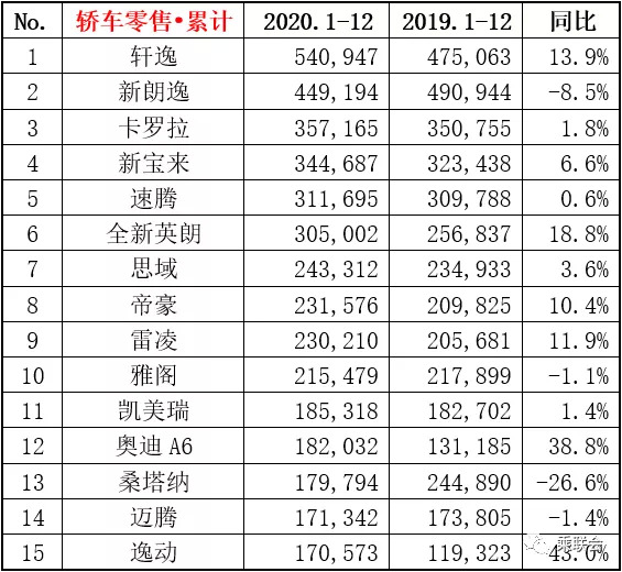 虽然日产品牌的整体销量下滑了,但是旗下的轩逸却是一个例外,12月其销量为62,867辆,以540,947辆的全年销量顺利拿下轿车类别的销冠。凭借年销量超过50万的体量,年度车型销冠也非轩逸莫属了。轩逸的跑出并不偶然,19年中下旬上市的新一代轩逸更加注重年轻化的定位,扁平化的宽体外观设计更加讨喜新生代消费者,用车品质方面,延续了惯有的舒适性和经济性。再加上与由上一代演变而来的经典车型形成同堂销售,经典款主攻10万以下区间,正常款上攻10-14万区间,出色的性价比造就了轩逸在2020年一路高开。