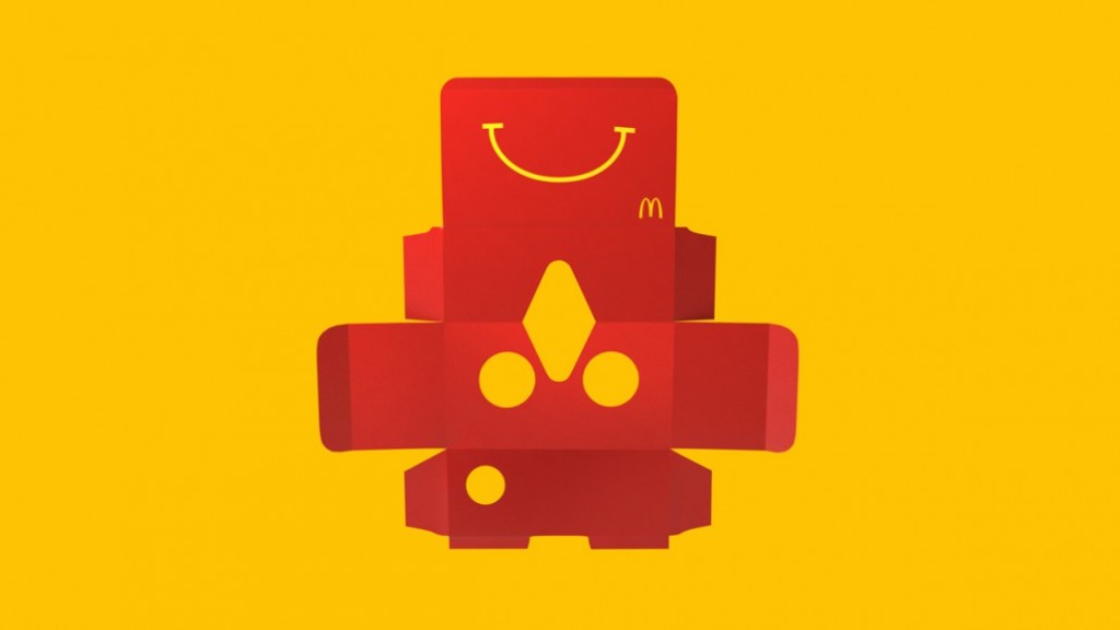 3月5日,瑞典麦当劳将推出虚拟现实开心乐园餐,当你完汉堡薯条后,根据图示把包装盒一折,一幅VR眼镜就出现了。这款眼镜跟开心乐园餐一样,这款VR眼镜叫“开心眼镜”(Happy Goggles)。