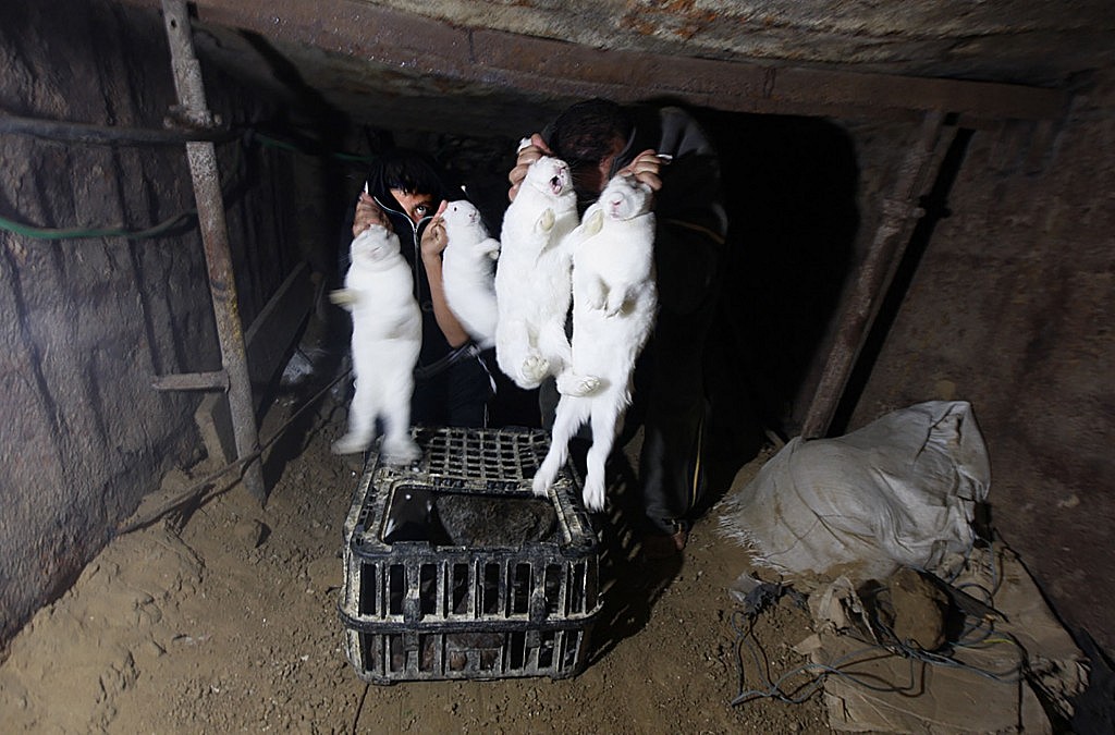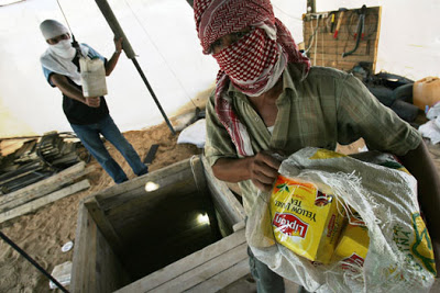 在加沙的南部城市拉法(Rafah),求生欲望极强的人们开始一点点用手刨开了通往埃及的地道,打算偷偷摸摸溜过去买些生活必需品,再闪闪躲躲带回来。