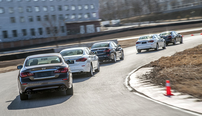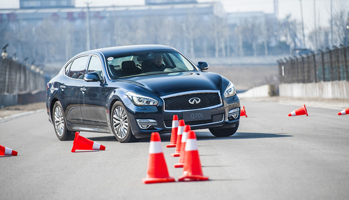 在随后的蛇形绕桩、赛道列跑、紧急避让环节中,Q70的庞大身躯比想像中要灵活不少,前双叉臂、后多连杆悬架的设置也能在紧急转向的过程中提供比较韧性的支撑。英菲尼迪希望通过这些项目设置令人感受到它的运动因子,但或许Q70这款车并不太会遇到这种激烈驾驶的情况,用更小一些的车型或许会取得更好的体验和效果。