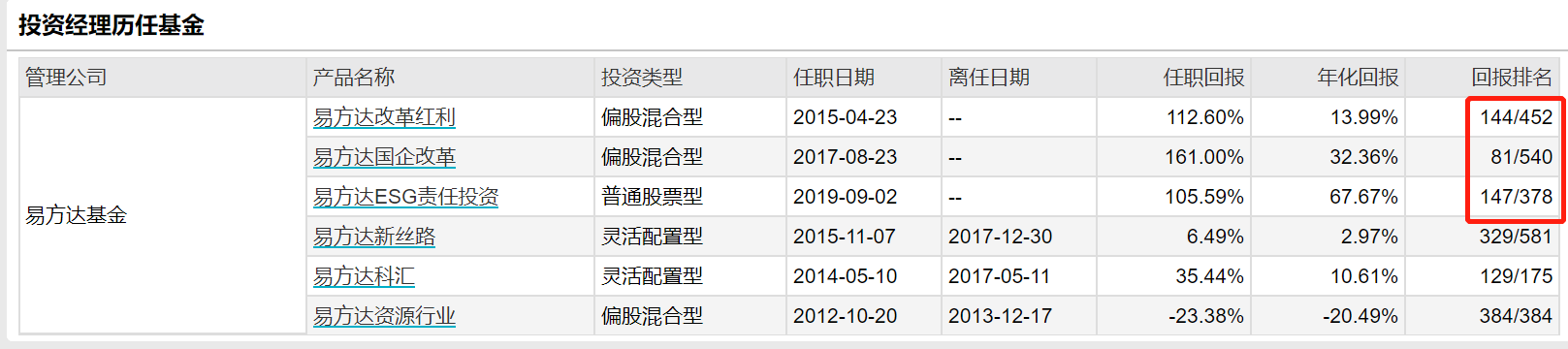 相比易方达蓝筹精选已经677亿的规模,郭杰在管的三只基金规模均较小,易方达国企改革仅3.01亿元,ESG责任投资6.05亿元,改革红利13.05亿元。