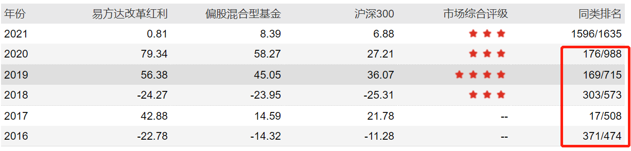 加码白马龙头股并保持较高仓位,这种配置思路显然选对了赛道。2019年、2020年,改革红利的回报率分别为56.38%和79.34%,位列同类排名的169/715、176/988。