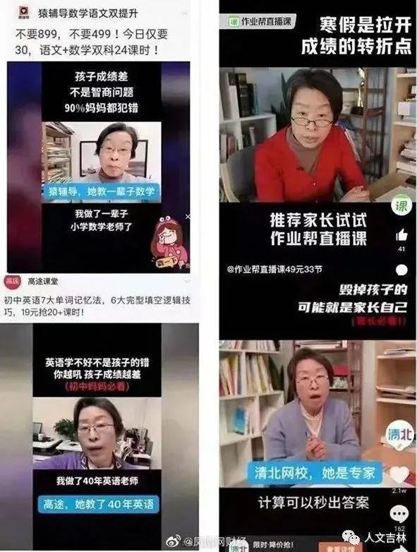 这位集多重身份于一体的“老师”,分布在猿辅导、高途课堂、清北网校和作业帮四家在线教育企业的广告中。