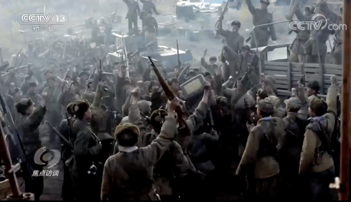 《跨过鸭绿江》总编审、总制片人 王浩:所谓全景式就是尊重于历史和尊重于史实,要把抗美援朝的重大历史全部囊括其中,史诗般是要用审美的方式、戏剧化的方式,通过讲述故事的方式,通过挖掘人物、塑造人物性格,塑造人物在重大历史关节点上所发挥的特殊作用,这种审美的力量能够直击人心,能够感动人、教育人,能让人看得热血沸腾。