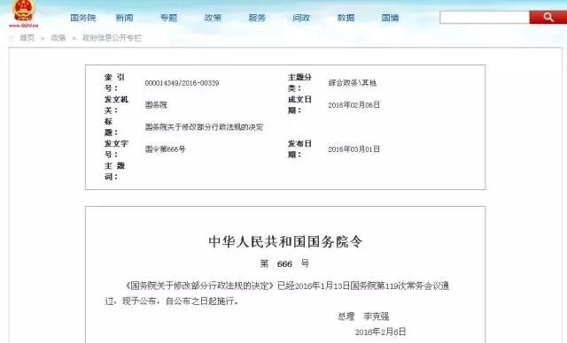日前,国务院总理李克强签署第666号国务院令,公布《国务院关于修改部分行政法规的决定》(以下简称《决定》),《决定》自公布之日起施行。