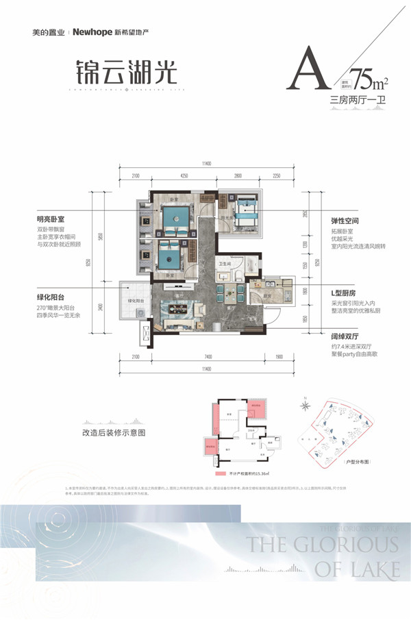 项目甄选湖与城市最佳的距离,为生活在都市里的人,敬献每周“5天在城市,2天在湖岸”的城市生活微度假。内部规划楼栋朝向、让大部分楼栋一线盛开在湖岸线上,引入5M智慧服务体系,让锦云湖光成为江南理想的湖岸栖息地。