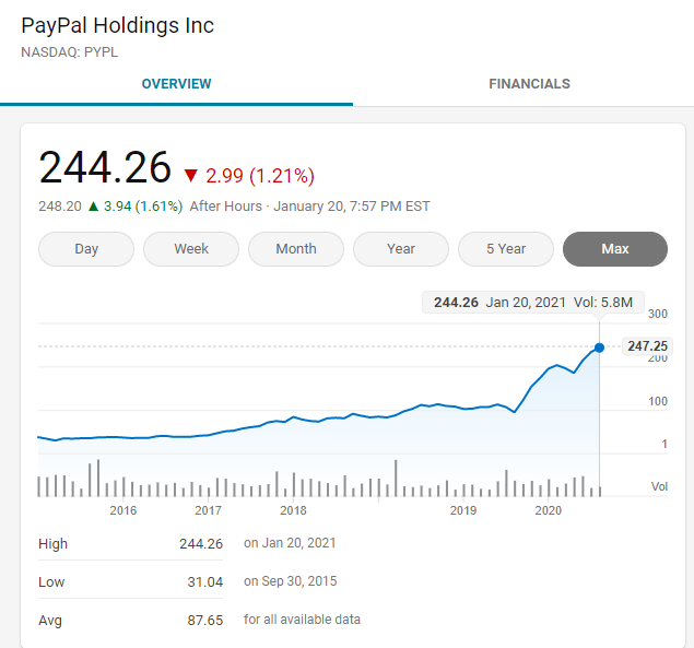 而线上交易量的激增也使各大移动支付公司的股价顺势“起飞”。其中,PayPal的表现尤为出色,从年初的约100美元,飙升至年末的约240美元,上涨了一倍以上,被认为是2020年的首先股票。